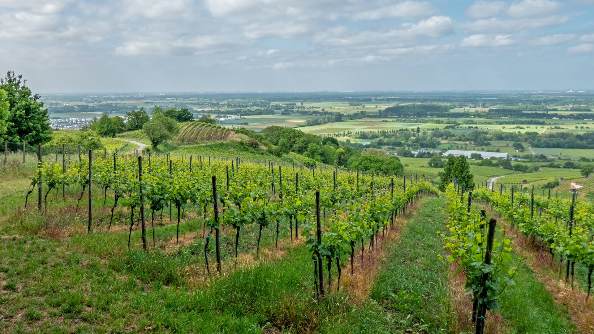 Kaum vier Wochen ist es her, da waren gerade mal die ersten Blätter an den Reben. Der Buchenwald in den oberen Lagen hatte noch ein lichtes Blätterdach und ließ noch viel Sonne bis auf den Boden durchdringen. Jetzt ist das Blätterdach geschlossen und im Wald ist es, so früh am Morgen, ohne Sonnenschein fast ein bisschen dunkel und noch richtig frisch.