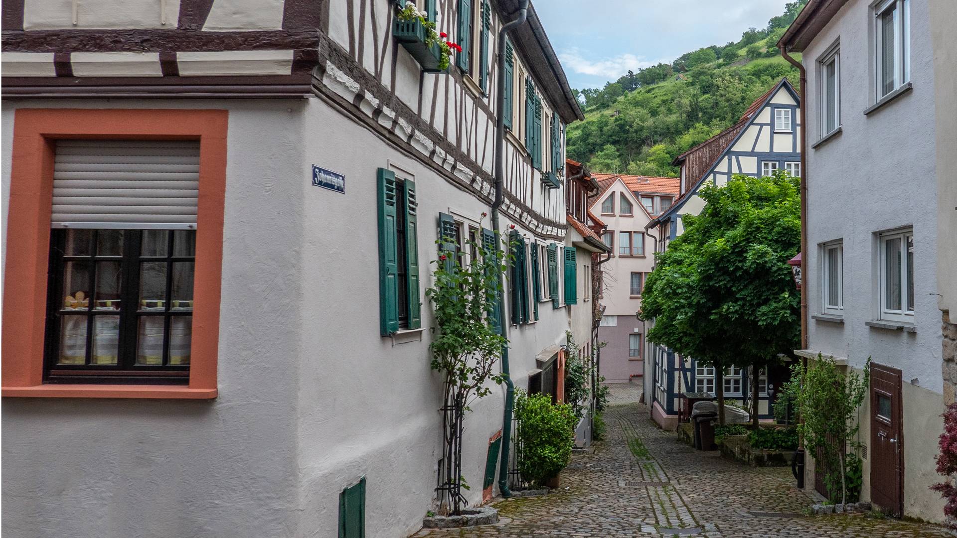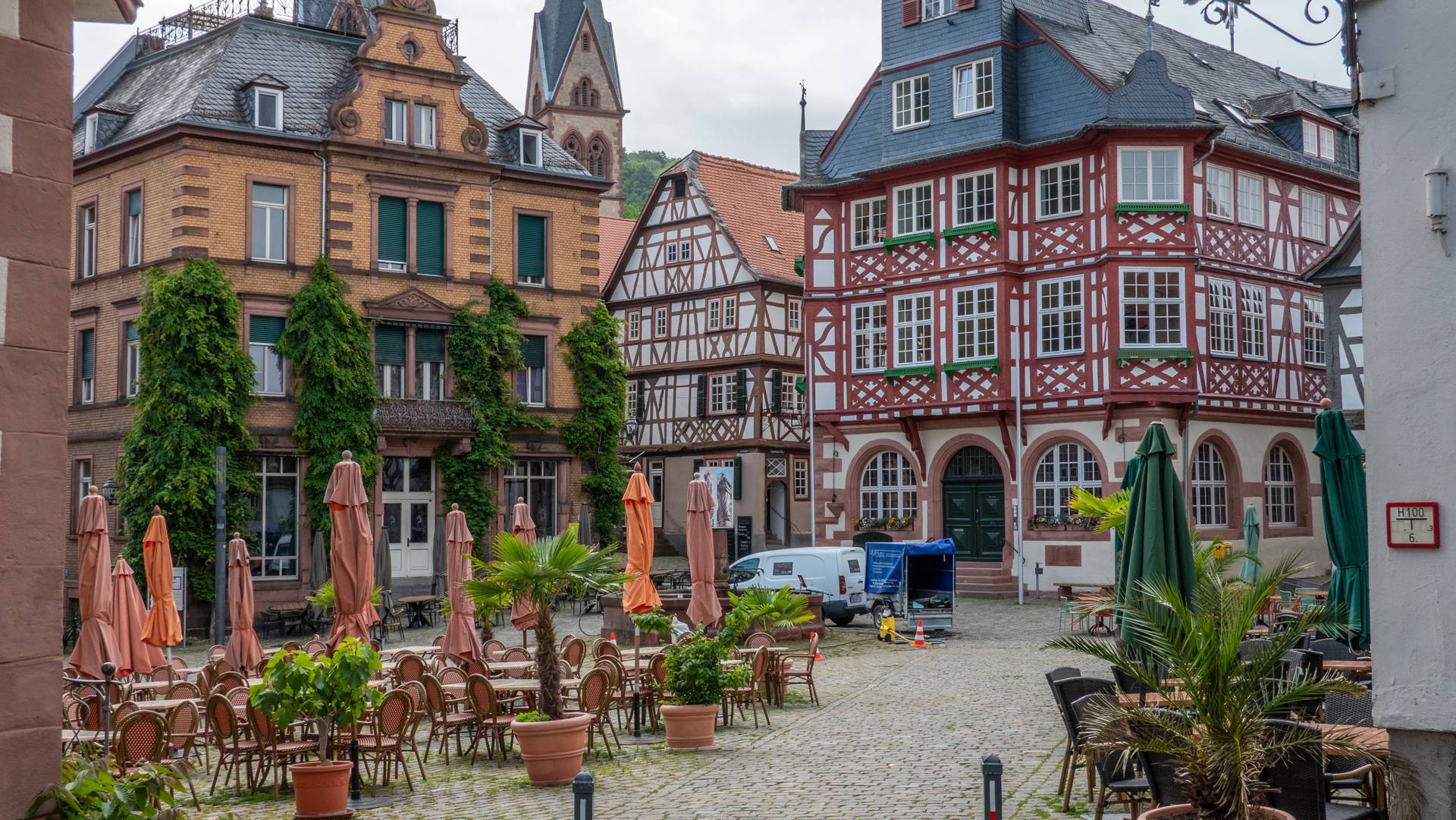 Mein Eindruck ändert sich schlagartig, als ich durch einen unscheinbaren Durchgang zwischen zwei Geschäften durchgehe. Hier also versteckt sie sich, die historische Altstadt. Und dabei braucht sie sich doch gar nicht verstecken. Ein schmuckes Fachwerkhaus steht am anderen und der alte Markplatz lädt zu einem Kaffee unter dem Sonnenschirm ein.