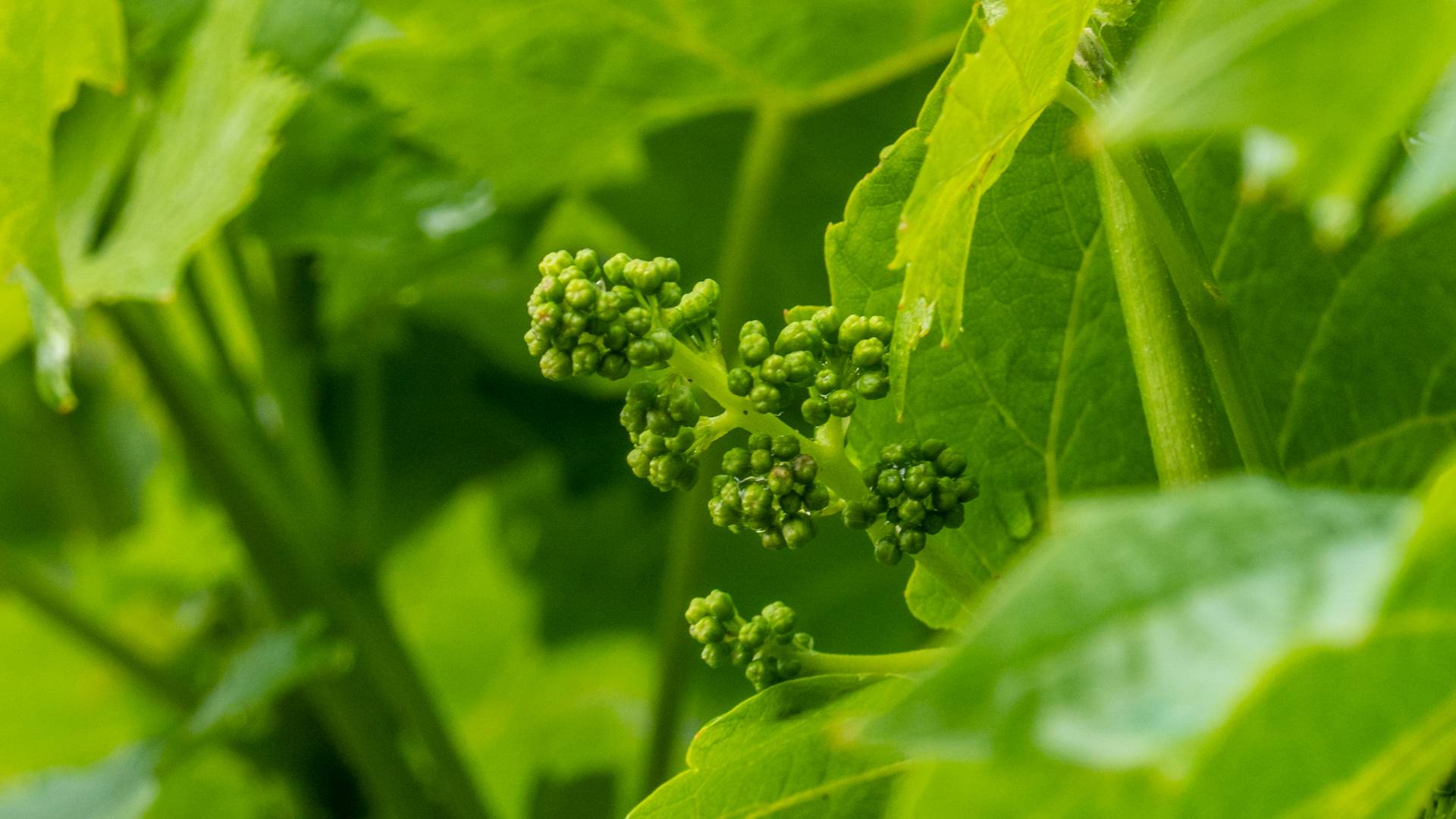 Die ersten kleinen Weinträubchen und streben der Sonne entgegen