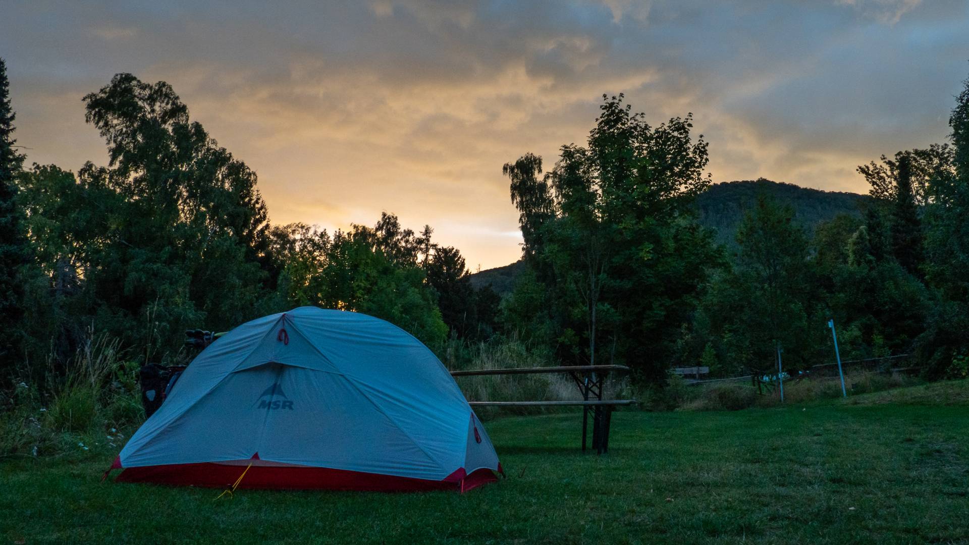 Schon am Vortag spürte ich eine deutliche Erschöpfung, besonders auf den letzten Kilometern bergan zum Campingplatz. Meine Nacht war auch nicht sehr erholsam. Die Isomatte, mit ihrer als besonders komfortabel beworbenen Oberfläche, ist zwar schön dick, mein Körper empfindet die unebene Liegefläche allerdings als eher störend. Da es die Nacht auch noch ein paar Mal geregnet hat, war ich alles andere als ausgeschlafen.