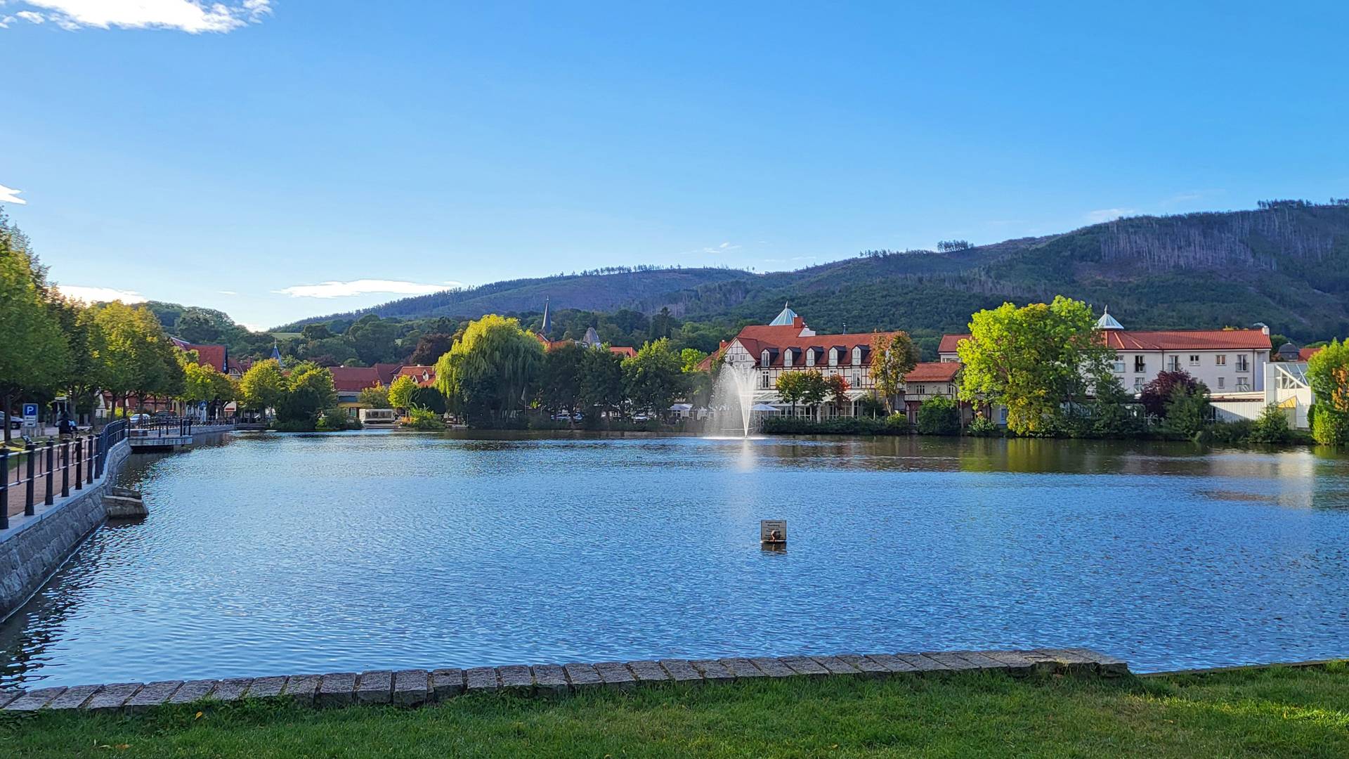 In Ilsenburg kommt nun auch die Sonne richtig raus. Sie wärmt meine Nase und lässt die hübsch gepflegte Altstadt, um den Marktplatz und dem Teich, noch mehr glänzen. Obwohl die Sonne ihr bestes gibt, ist es mir noch zu frisch für ein Frühstück draußen vor der Bäckerei. Den heißen Kaffee in der Hand, schaue ich nach draußen und denke über die weitere Strecke nach.
