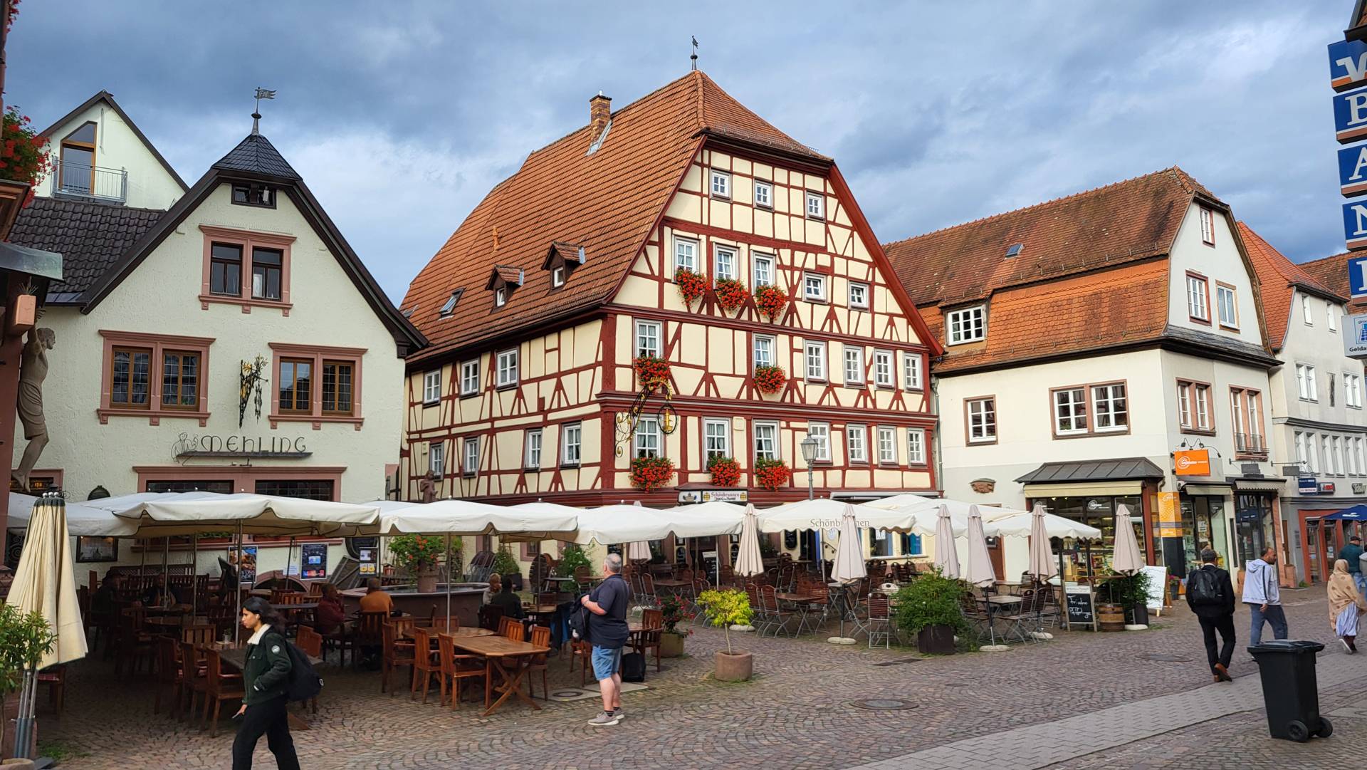 So sitze ich schmausend auf einer Bank auf dem Marktplatz, mit der Semmel in der Hand. Wenn die Franken jetzt noch Schokolade herstellen würden, dann wäre es der Himmel auf Erden. So kommt die Schokolade als Nachtisch dann aus dem Württembergischen. Schmeck auch gut.