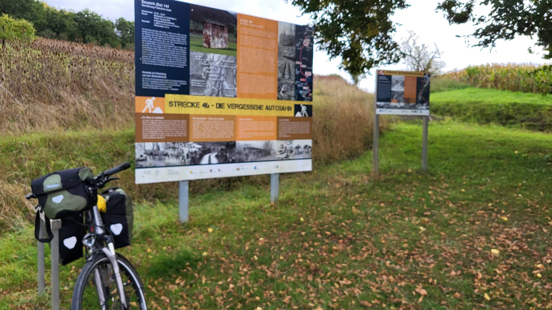 Bei Schonderfeld wartet schon wieder ein Stück deutscher Geschichte. Einige Brückenpfeiler der Strecke 46 stehen im Tal der Saale. Die Reichsautobahn 46 sollte Hitlers Fiktion des „Autowanderns“ wahr werden lassen. Die Streckenführung sollte dem Autofahrer ein Erleben und Genießen der „Schönheiten der deutschen Landschaft“ ermöglichen. Zum Weiterbau fehlten allerdings schnell die Arbeitskräfte. Die wurden kräftig an den Fronten verheizt.